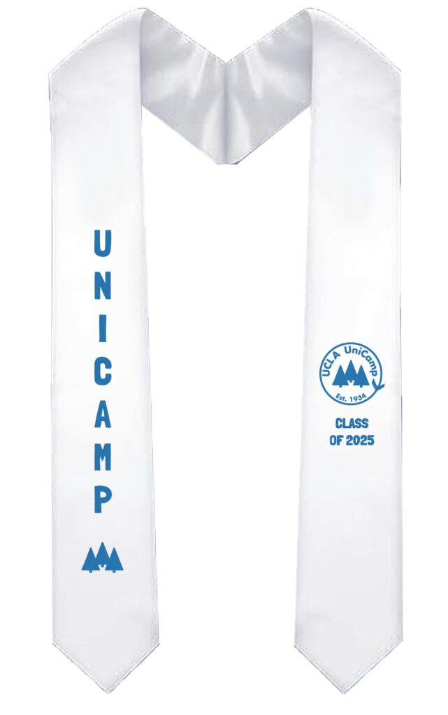 A white satin UniCamp Class of 2025 stole.